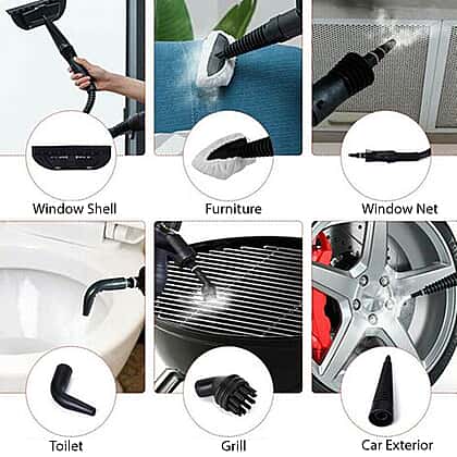 Multi Purpose Handheld Pressurized Steam Cleaner with 9 Piece Accessories for Stain Removal Carpets Curtains Bed Bug Control Car Seats and UK Plug Grey