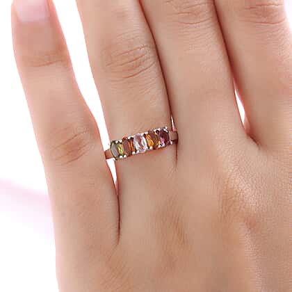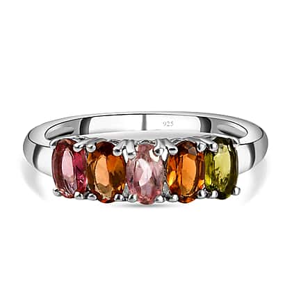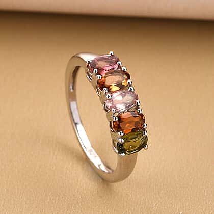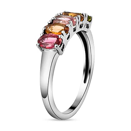 Multi-Tourmaline 5 Stone Ring in Platinum Overlay Sterling Silver 1.10 Ct.
