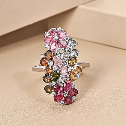 Multi-Tourmaline and Natural Zircon Ring in Platinum Overlay Sterling Silver 3.45 Ct.