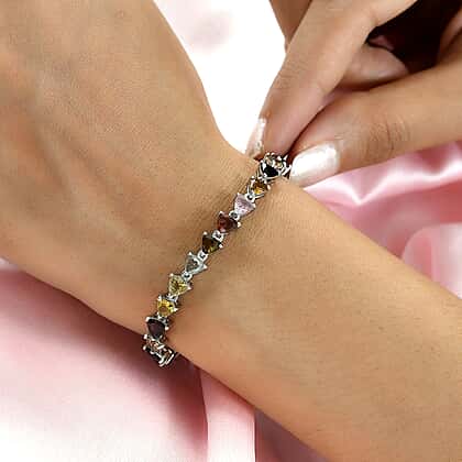 Multi-Tourmaline Bracelet (Size - 7.5) in Platinum Overlay Sterling Silver 11.02 Ct.
