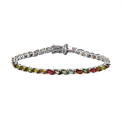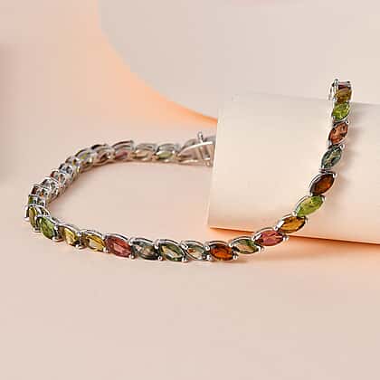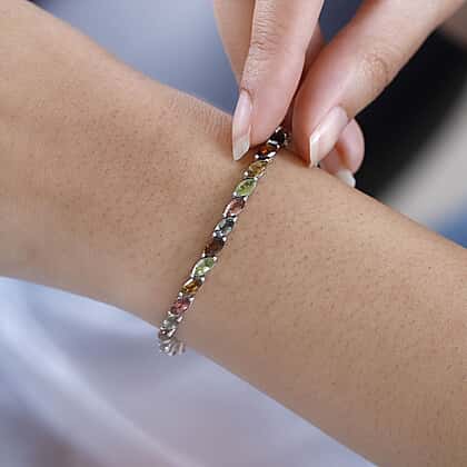 Multi-Tourmaline Linking Tennis Bracelet (Size - 7.5) with GB Lock Box in Platinum Overlay Sterling Silver 8.47 Ct, Silver Wt. 8.15 Gms