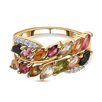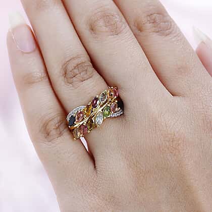Multi-Tourmaline & Natural Zircon Cluster Ring in 18K Vermeil Yellow Gold Plated Sterling Silver 2.14 Ct