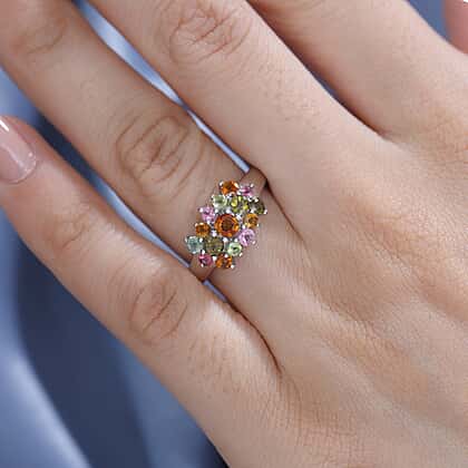 Multi-Tourmaline Cluster Ring in Rhodium Overlay Sterling Silver 1.04 ct.