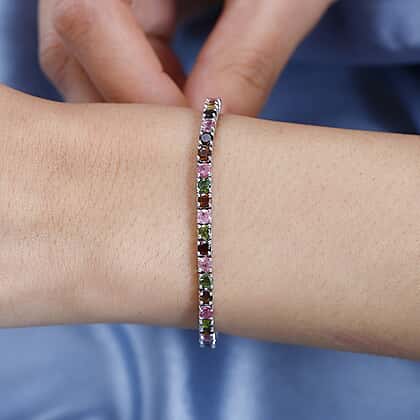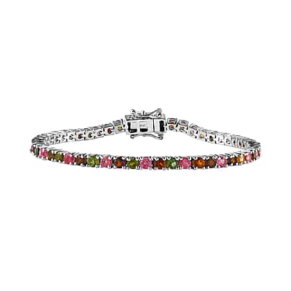 Multi-Tourmaline Tennis Bracelet (Size - 7) in Platinum Overlay Sterling Silver 6.78 Ct, Silver Wt 9.60 GM