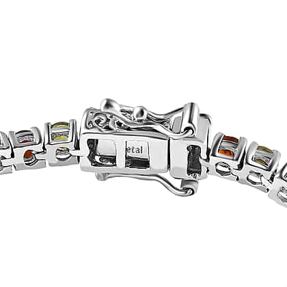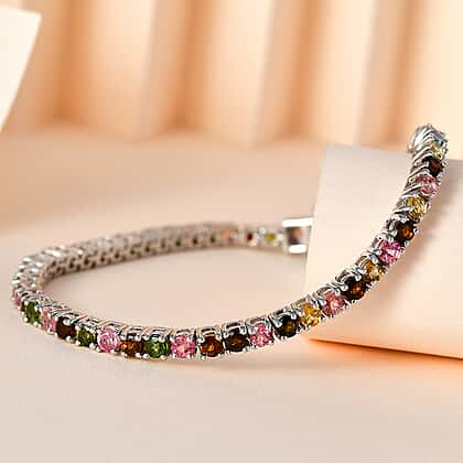 Wrap your wrist in a rainbow of sophistication with this multi-tourmaline tennis bracelet, a symphony of vibrant hues. This bracelet features round-shaped stones, carefully selected to create a seamless flow of colour, making it a versatile addition to any ensemble. The secure box clasp ensures that this piece stays with you as the perfect complement from day to night, embodying elegance in every facet. Set in platinum overlay sterling silver, the enchanting charm of this bracelet is sure to make you sparkle for the right reasons.