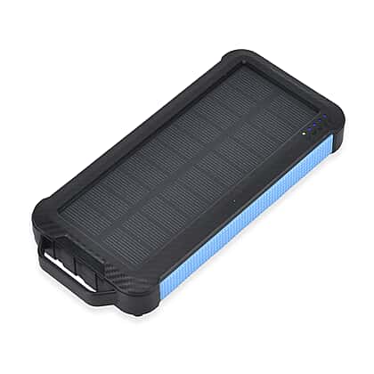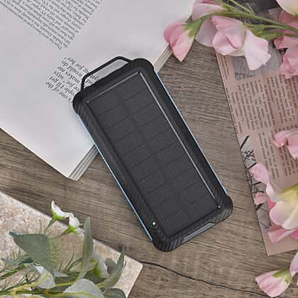 Multifunctional Solar Power Bank (Power 10000 mAh) with Wireless Charging (Inc. Type C, Micro USB & Lightning Cable) - Blue & Black