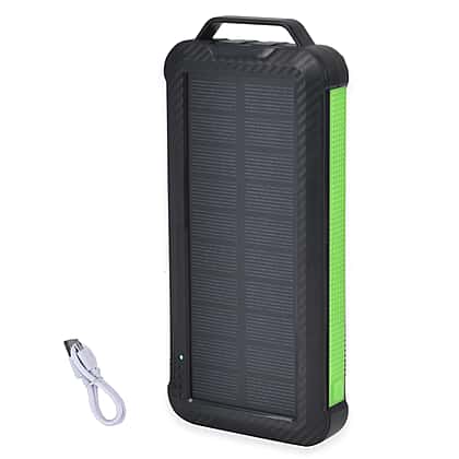 Multifunctional Solar Power Bank (Power 10000 mAh) with Wireless Charging (Inc. Type C, Micro USB & Lightning Cable) - Green & Black