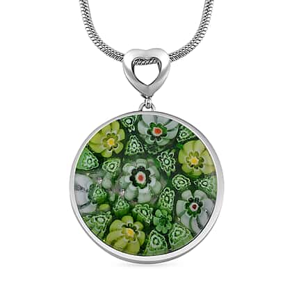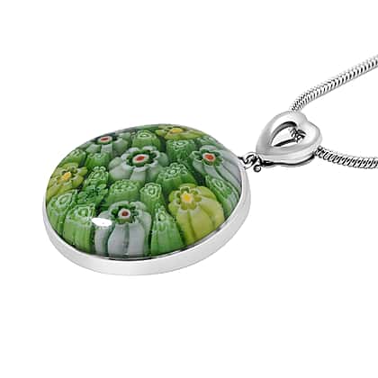 Green Color Murano Glass Pendant with Chain (Size 24) Pure White Stainless Steel 25.000 Ct.
