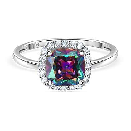 Mystic Topaz Cubic Zirconia, White Cubic Zirconia Halo Ring in Rhodium Overlay Sterling Silver 4.59 ct.