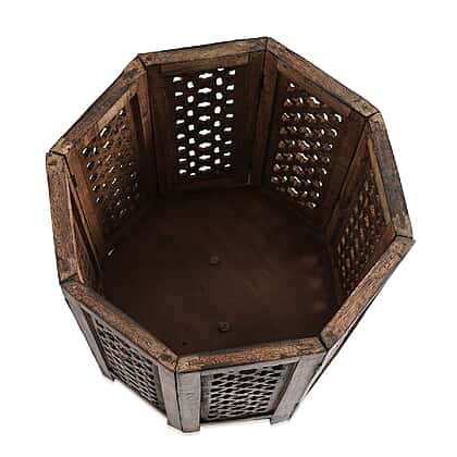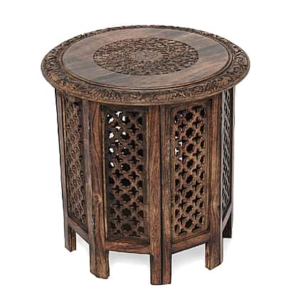 - JALI DETAIL FOR LATTICEWORKJali stand in Antique Burn finish makes this wooden tables stand apart from the crowd