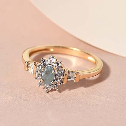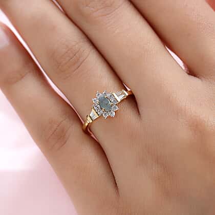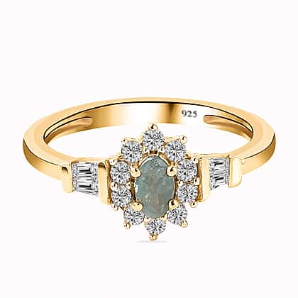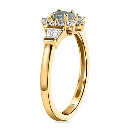 Halo Narsipatnam Alexandrite Ring with White Zircon in Gold Plated Sterling Silver 0.79 Ct.
