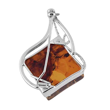 25 Ct Natural Baltic Amber Brooch in Sterling Silver