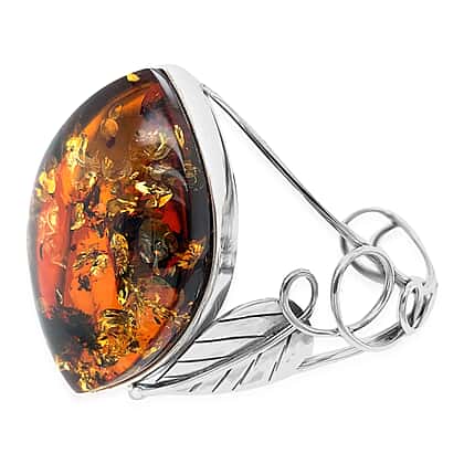 Natural Baltic Amber Cuff Bangle (Size 8) in Sterling Silver, Silver wt 30.04 Gms