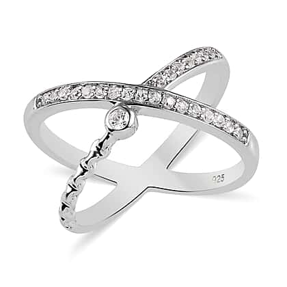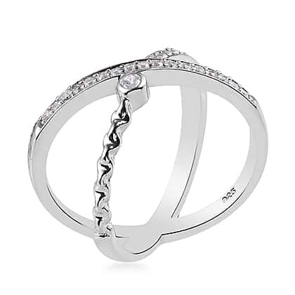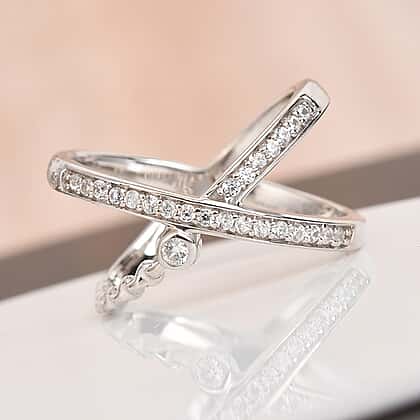 Designer Inspired 0.5 Ct. Natural Cambodian Zircon Criss-Cross Ring in Platinum Plated Sterling Silver