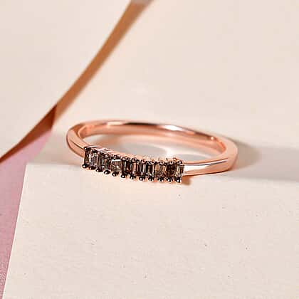 Natural Champagne Diamond Band Ring in 18K Vermeil Rose Gold Plated Sterling Silver