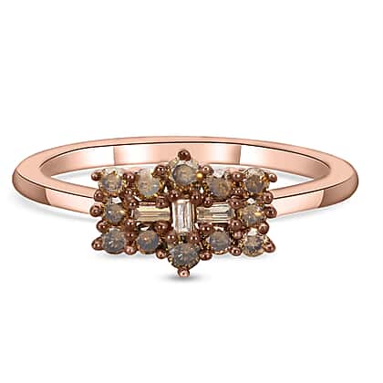 Boat Natural Champagne Diamond Ring in Rose Gold Plated Sterling Silver 0.50 Ct.
