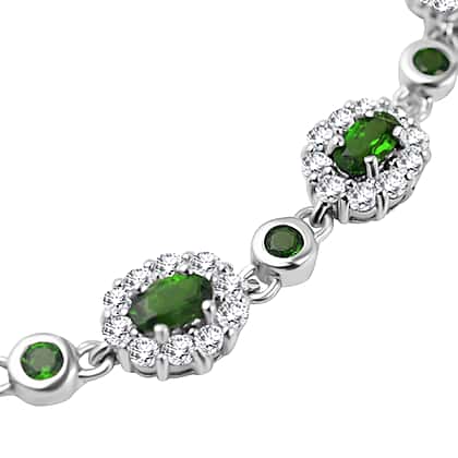 Natural Chrome Diopside and Natural Zircon Bracelet (Size - 7) in Rhodium Overlay Sterling Silver 6.52 Ct, Silver Wt. 10.40 Gms.