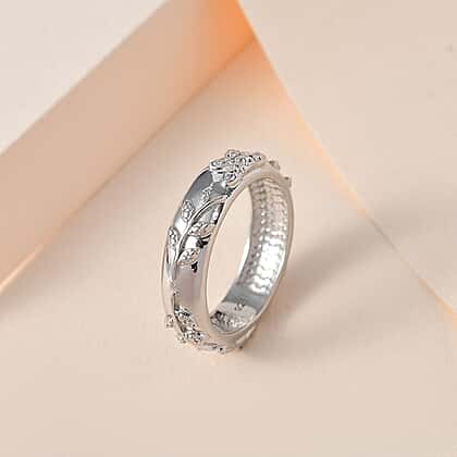 Natural Diamond Leaf Band Ring in Platinum Overlay Sterling Silver