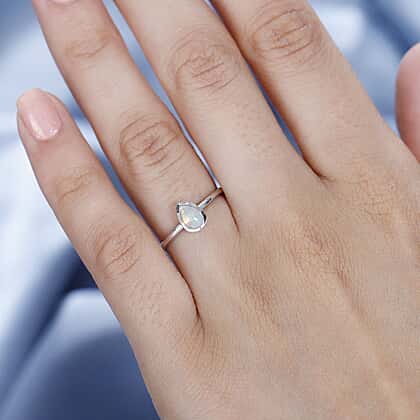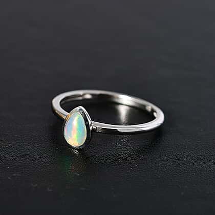 Natural Ethiopian Opal Solitaire Ring in Platinum Overlay Sterling Silver