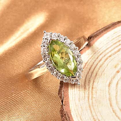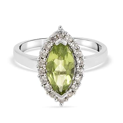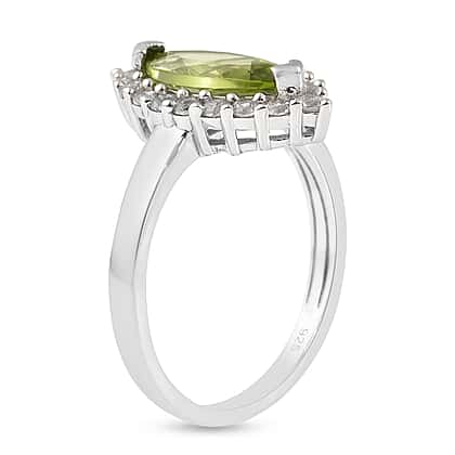 Natural Hebei Peridot and Natural Cambodian Zircon Ring in Rhodium Overlay Sterling Silver 2.66 Ct.