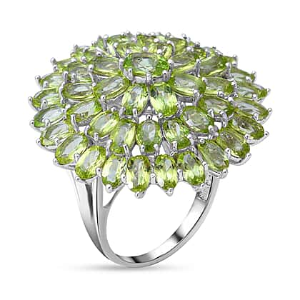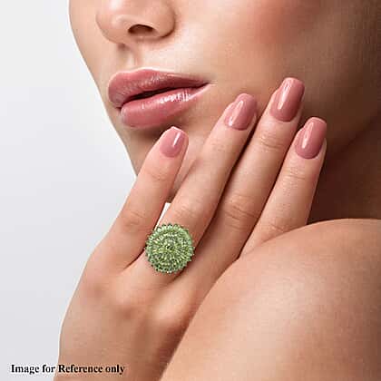 Natural Hebei Peridot Cluster Ring in Rhodium Overlay Sterling Silver 12.47 Ct, Silver Wt. 8.20 Gms.