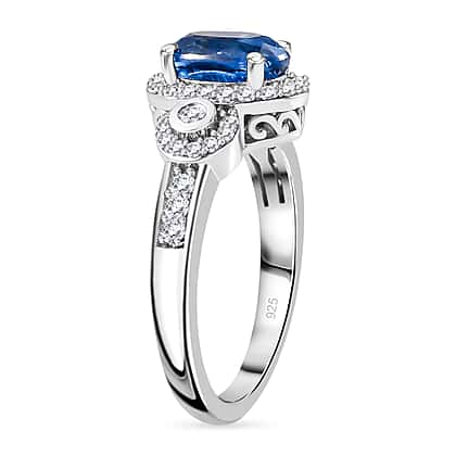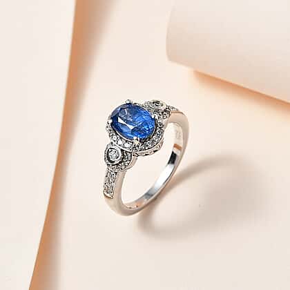 Natural Himalayan Kyanite & Natural Zircon Ring in Platinum Overlay Sterling Silver 2.12 Ct.