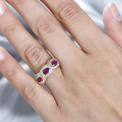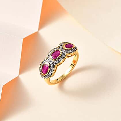 John Saul Ruby and Natural Zircon 3-Stone Ring in 18K Vermeil Yellow Gold Plated Sterling Silver 1.40 Ct