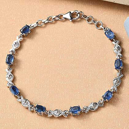 Natural Kashmir Kyanite Bracelet (Size - 7.5) in Platinum Overlay Sterling Silver 4.67 Ct, Silver Wt. 5.11 Gms