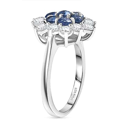 Natural Kashmir Kyanite & White Zircon Cluster Ring in Platinum Overlay Sterling Silver 3.11 Ct.