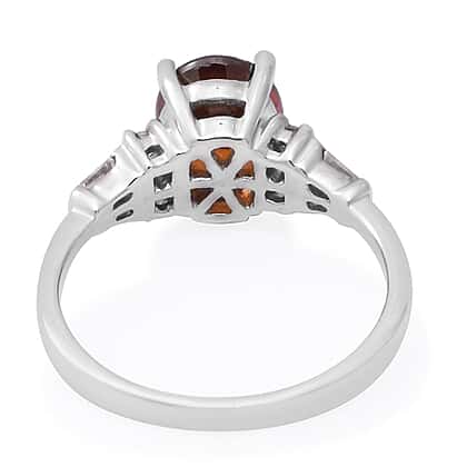 3.20 Ct Red Zircon and Zircon Solitaire Ring in Rhodium Plated Sterling Silver