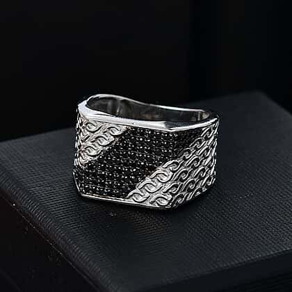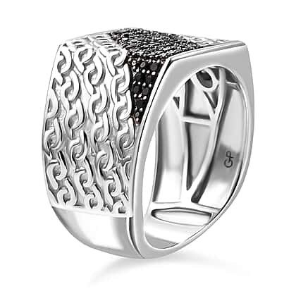 Make a bold impression with this GP Collection statement ring, crafted in rhodium overlay sterling silver for a hypoallergenic, tarnish-resistant finish. The eye-catching wide band features a striking contrast of textured chain motifs and pavé-set black spinels, creating a look that’s both edgy and refined. Black spinel, a robust and rare gemstone, adds deep colour and captivating sparkle to the design. Perfect for women who enjoy unique pieces that tell a story, this ring delivers on drama and detail. Handmade for comfort and style, it’s a conversation starter that complements both everyday and evening looks with effortless flair.