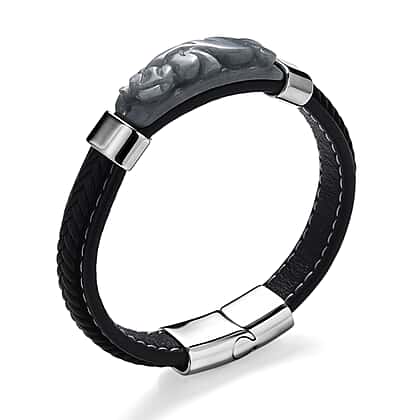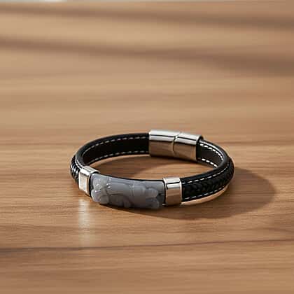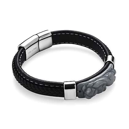 Add a grounded, modern touch to your wrist with this natural jade bracelet, shaped for everyday ease. The smooth grey jade brings a calm, earthy look, while the stainless steel accents add a clean, structured finish. The textured black band creates contrast and depth, giving the piece a strong yet understated presence. Comfortable to wear and simple to style, it works seamlessly with relaxed outfits, work looks, and evening layers, offering a balanced blend of polish and natural character.