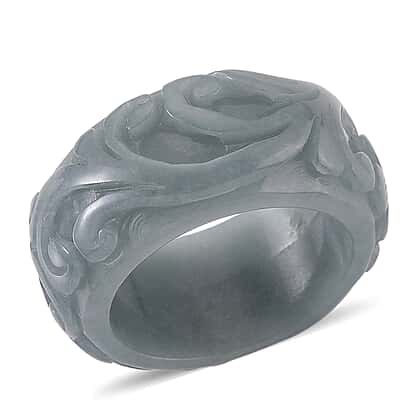 Natural Type A Jadeite Flower Carved Band Ring 50.00 Ct.