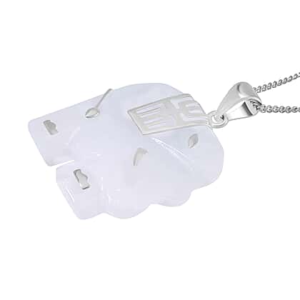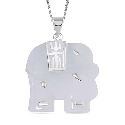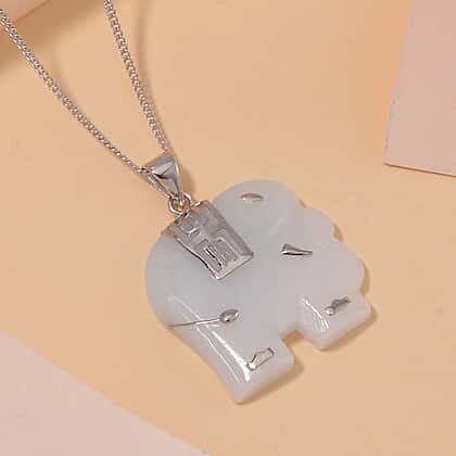 Natural Type A White Jadeite Carved Elephant Pendant with Chain (Size 20) in Platinum Overlay Sterling Silver 26.000 Ct.