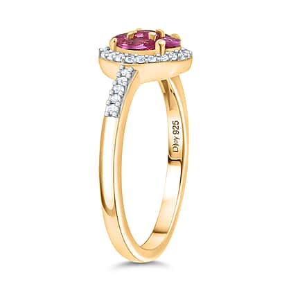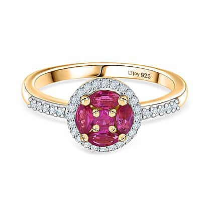 Natural Unheated Ruby & White Zircon Ring in 18K Vermeil Yellow Gold Plated Sterling Silver