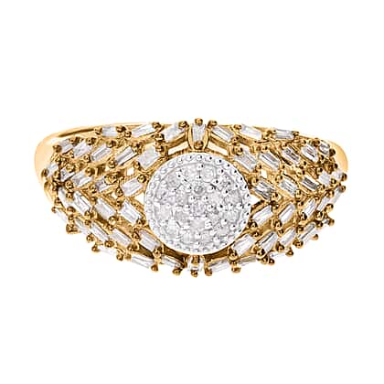 - Golden opulence studded with a cluster of sparkling baguette and round diamonds.