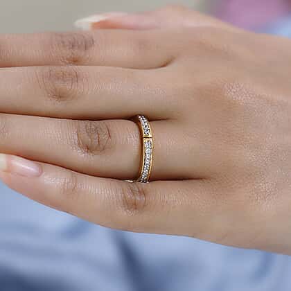 - Studded with zircon rounds in a durable prong setting