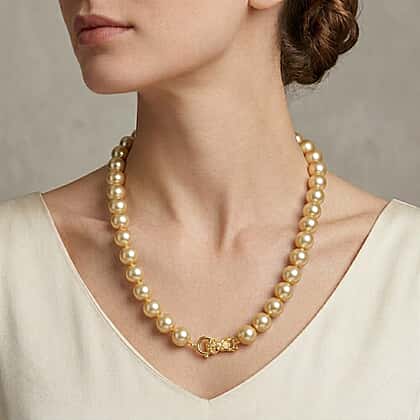 A refined take on classic pearl styling, this necklace features golden shell pearl beads that radiate a rich, lustrous glow with every movement. Each bead is smoothly polished and carefully matched in size, creating a balanced and cohesive look that sits beautifully along the neckline. The golden tone adds depth and warmth, offering a refined alternative to traditional pearl shades while maintaining a timeless appeal. Finished with a gold-tone clasp, the design ensures a secure fit while complementing the overall colour palette. Lightweight and comfortable, this piece transitions effortlessly from everyday wear to more elevated occasions.