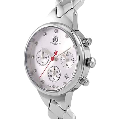 WILLIAM HUNT Japan Movt. White Dial 5 ATM Water Resistant Moissanite Watch with Stainless Steel Chain Strap