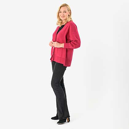 Add a touch of charm to your wardrobe with this pink cotton knitted solid cardigan, designed for effortless style and comfort. Made from 100% premium cotton, it provides a soft, breathable, and cosy feel, perfect for year-round wear. The elegant V-neckline and button-down front create a timeless silhouette, while the two front pockets add both practicality and flair. With its full-length sleeves, this cardigan keeps you warm without compromising on style. Whether layered over a casual top or paired with your favourite dress, this pink cardigan is a versatile essential for any occasion.