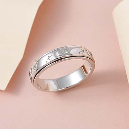 18K Vermeil Rose Gold Plated Sterling Silver Moon & Star Spinner Ring