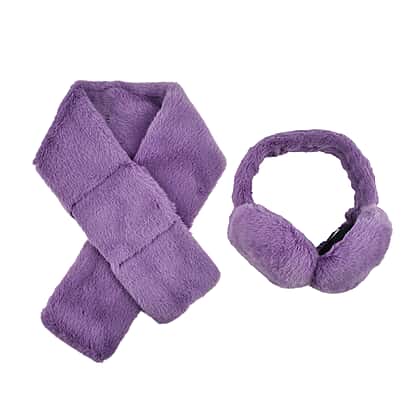 2 Piece Set - Faux Fur Earmuffs and Scarf - Purple