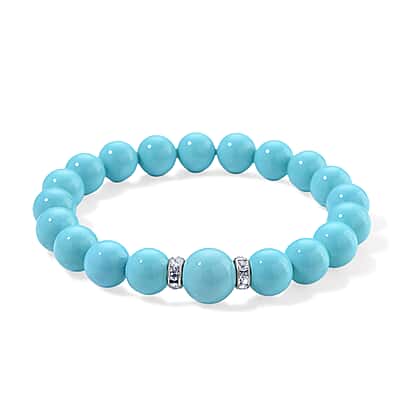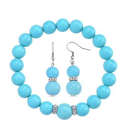 2 Piece Set - Sleeping Beauty Colour Shell Pearl & Austrian White Crystal Earring with Hook & Strechable Bracelet (Size - 7.5) 169.00 Ct.