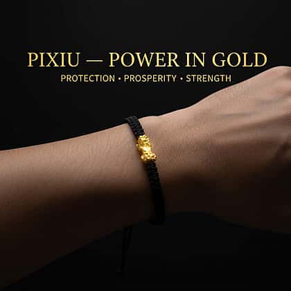 24K Yellow Gold (99.99% Purity) Pixiu Adjustable Bracelet with Black Cord