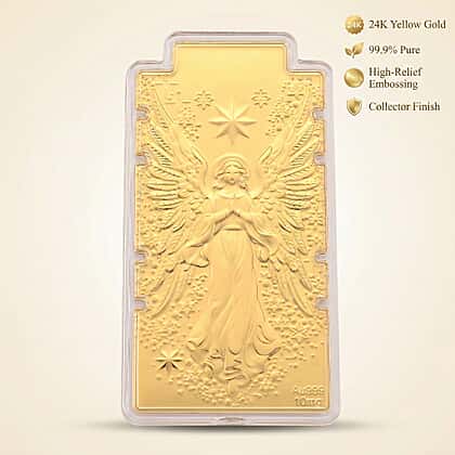 24K Yellow Gold (99.9% Purity) Large Angel Embossed Collectable - Serving as a Guardian Emblem for Peace & Spiritual Protection