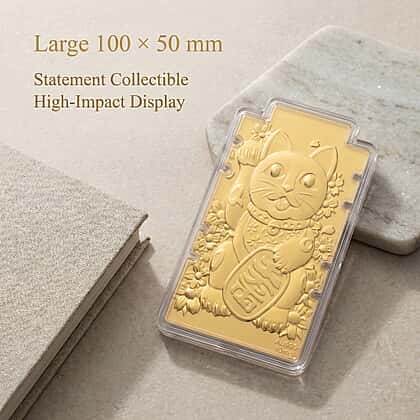 24K Yellow Gold (99.9% Purity) Large Maneki Neko Cat Embossed Collectable - Symbolise Wealth, Good Fortune & Prosperity