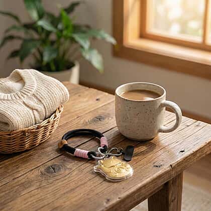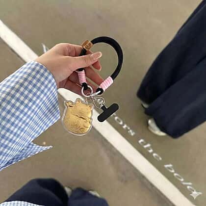 Brighten up your day with this delightful 24K yellow gold lucky cat keychain, paired beautifully with a black and pink lanyard. The glossy gold charm, embossed with a cheerful cat, symbolises prosperity and good energy. Designed with a sturdy wrist loop for daily wear, it blends style, function, and meaning effortlessly. The contrasting shades give it a bold yet playful charm, while the smiley tag adds a feel-good touch. Whether clipped to your keys, phone, or bag, it’s a joyful accessory that’s made to spread positivity and luck wherever you go.