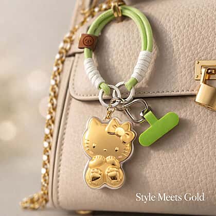 Bringing a little joy into your day feels effortless with the 24K yellow gold kitty keychain, which blends a sweet, playful motif with a polished, luxurious finish. The gold-tone kitty charm catches the light beautifully, while the soft green and white rope loop makes it easy to spot and comfortable to hold. A heart-shaped clasp and bright accent tag add extra character, giving the piece a fun, expressive feel. Designed to be lightweight yet sturdy, it attaches neatly to keys, handbags or backpacks, offering a cheerful touch that feels personal, stylish and perfect for everyday moments.