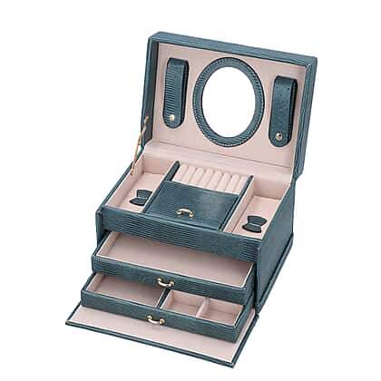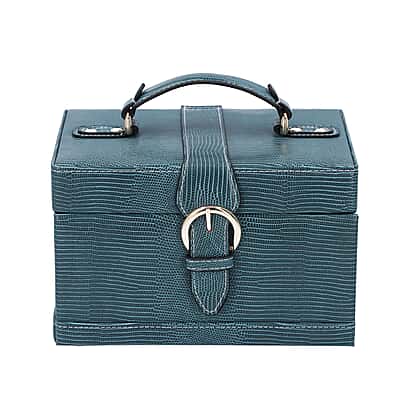 3 Layer Lizard Skin Pattern Jewellery Box with Inside Mirror and Button Lock (Size 22x16x14cm) - Teal Blue