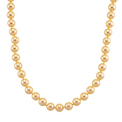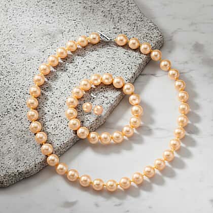 Set of 3 - Golden Shell Pearl Beads Stretchable Bracelet (Size - 7), Push Back Earring & T-Bar Clasp Necklace (Size - 20)